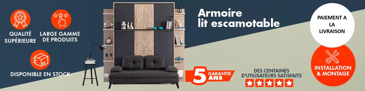 ARMOIRE LIT ESCAMOTABLE VERTICAL 2 PLACES AVEC CANAPE